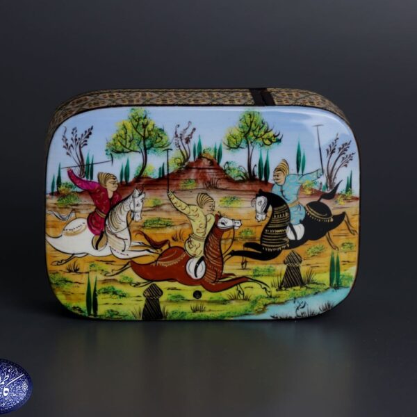 به دلیل دستساز بودن محصولات ممکن است در برخی کارها یک سانتیمتر تفاوت اندازه وجود داشته باشد . در خصوص نقاشی ها نکته ای قابل تامل است و امیدواریم هنر بینان عزیز این موضوع را در نظر داشته باشند که محصول ارسالی شباهت 90 درصدی با عکس سایت خواهد داشت . در نقاشی ها بنابر عدم کلیشه ای سازی طرح ها و بسته به ذوق نقاش ممکن است در رنگ بندی نقوش و شمایل تفاوت هایی باشد و تمام سعی ما این است که محصولی مشابه عکس به شما تقدیم کنیم . برای درک بهتر موضوع مثالی عرض خواهیم کرد . مثال : در نقاشیی روی یک جعبه 2 اسب سوار و 2 عدد اهو وجود دارد . رنگ بندی ها بدین ترتیب میباشد . اسب 1 مشکی ، اسب 2 سفید ، سوار 1 قهوه ای ، سوار 2 ابی ، اهو 1 کرم ، اهو 2 قهوه ای بنابراین در خرید به این توجه داشته باشید امکان جابجایی رنگ در لباس و … وجود خواهد داشت.