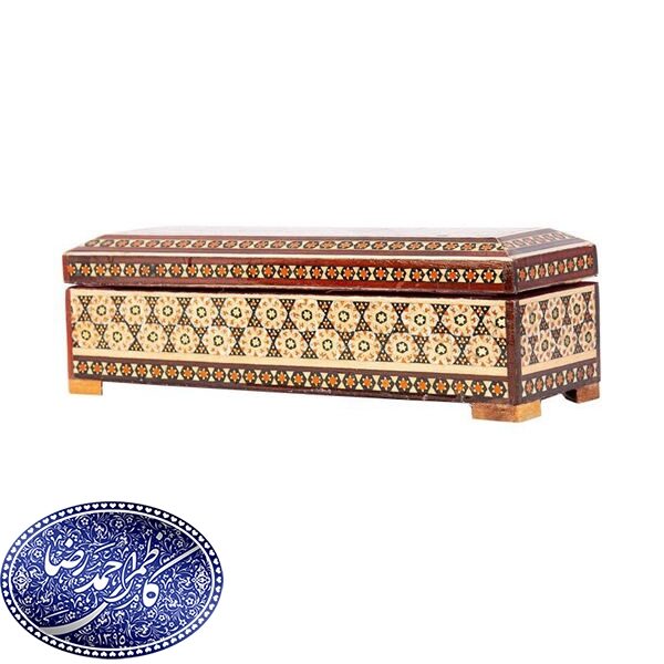 نقوش هندسی خاتم با استفاده از چوب های رنگی ، استخوان و فلز های مختلف از قبیل برنج و آلومینیوم تشکیل میشود . این هنر زیبا را بر روی محصولات مختلفی همچون جعبه صابونی ، شکلات خوری ، جعبه جواهرات ، قلمدان کشویی ، تخته نرد و،سرمه دان و …. به کار میبرند .